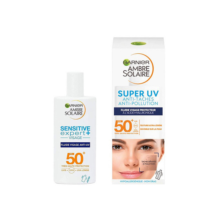 کرم ضد آفتاب بدون رنگ گارنیه SPF 50 مدل Ambre super uv مناسب پوستهای انواع پوست حجم 40 میلیلیتر