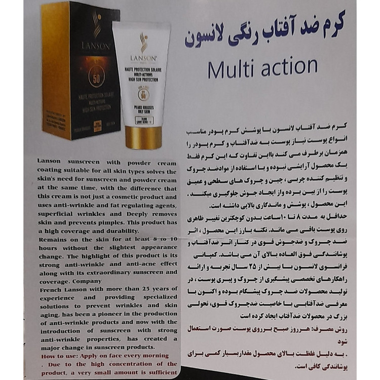 کرم ضد آفتاب لانسون مدل Multi action حجم 40 میلی لیتر